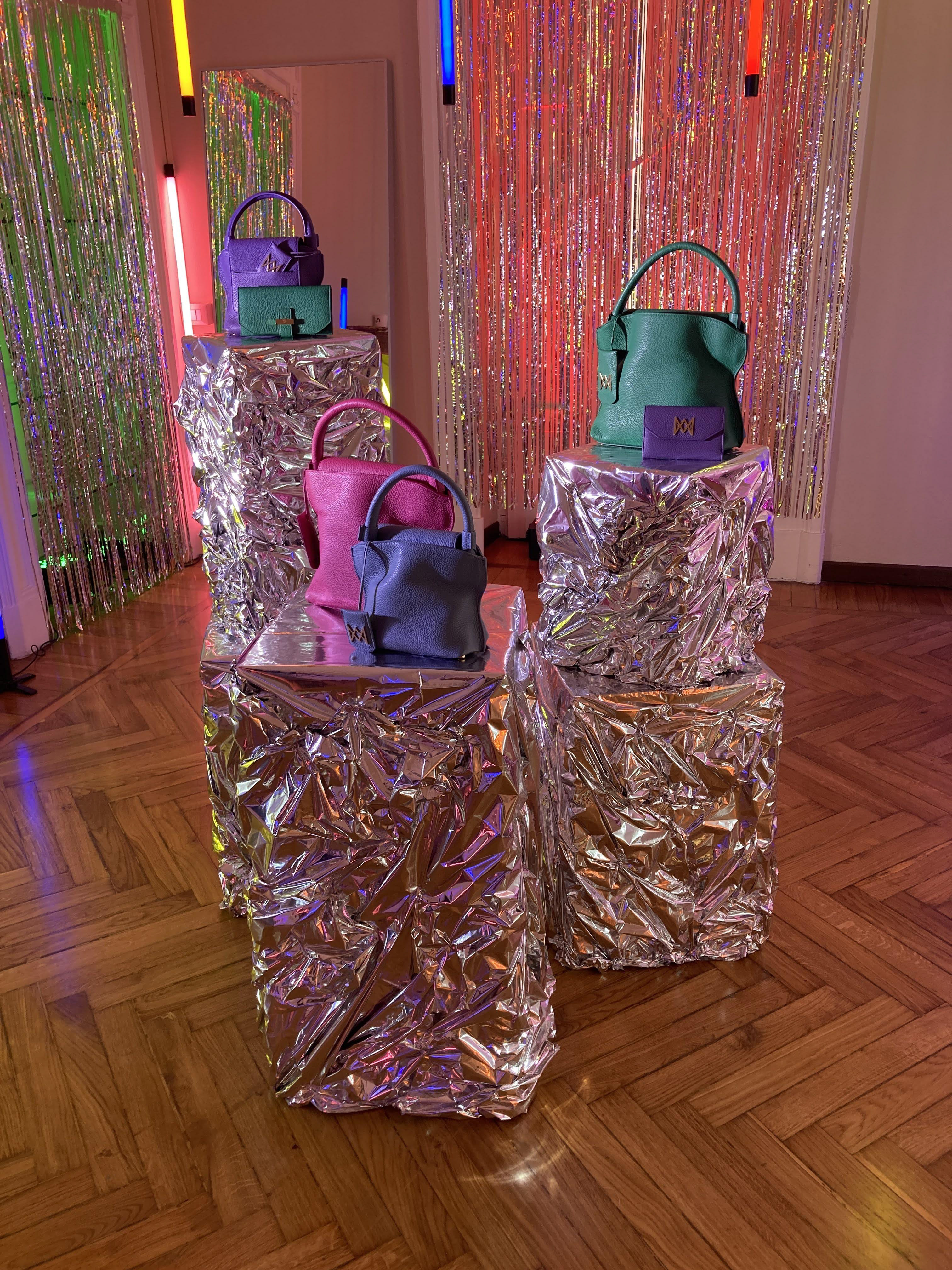 Three scenographic environments designed and created for the bag brand AMA BAG on the occasion of Milan Fashion Week 2022.